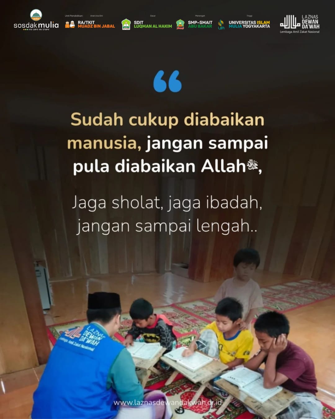 Sudah cukup diabaikan manusia, jangan sampai pula diabaikan Allah, Jaga sholat, jaga ibadah, jangan sampai lengah.