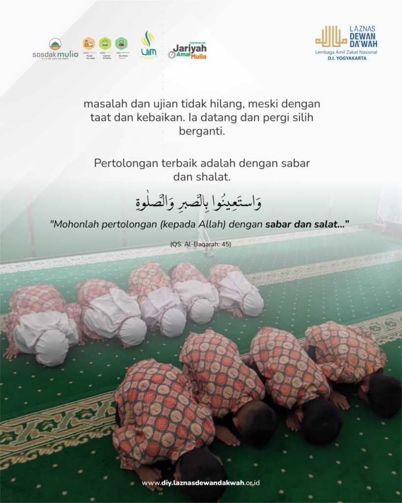 Sebenarnya, masalah dan ujian tidak hilang, meski dengan taat dan kebaikan. Ia datang dan pergi silih berganti seiring usia hidup masih berjalan. Pertolongan terbaik adalah dengan sabar dan shalat.