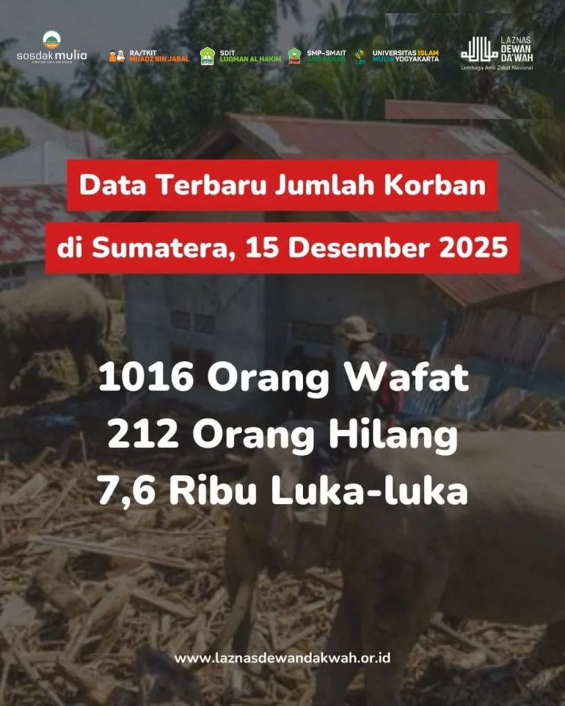 Innalillahi wa inna ilaihi raji’un, duka saudara terdampak di Sumatera semakin terasa. Sampai Senin (15/12), korban tembus 1.016 💔🥀
