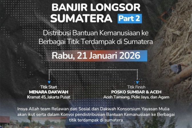 ✅Sosdak Mulia menerjunkan langsung ikut dalam konvoi kemanusiaan yang diadakan Laznas Dewan Dakwah yang akan kembali diberangkatkan pada Rabu, 21 Januari 2026. Konvoi ini akan membawa bantuan, relawan serta kebutuhan lain untuk bantu pulihkan Sumatra ❤🩹
